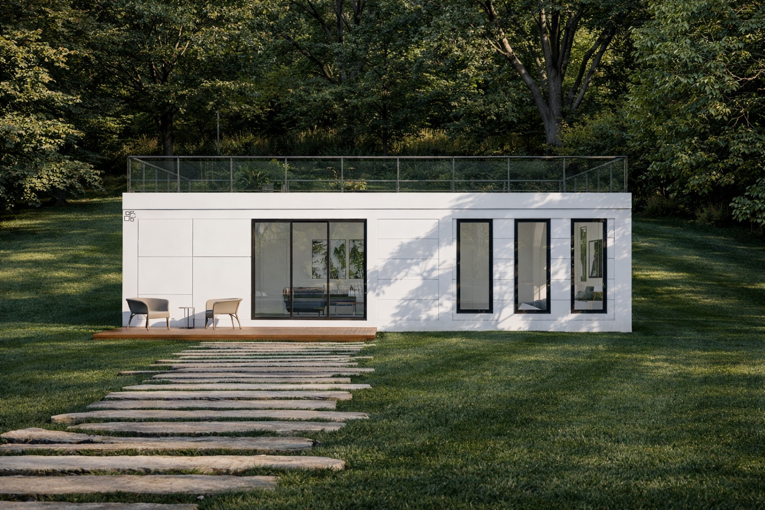 Deck ADU allows you to use your entire home from top to bottom, capture the views of the neighborhood or realize you have more to see than just your backyard patio. The Deck plan is shown with a stucco finish.
